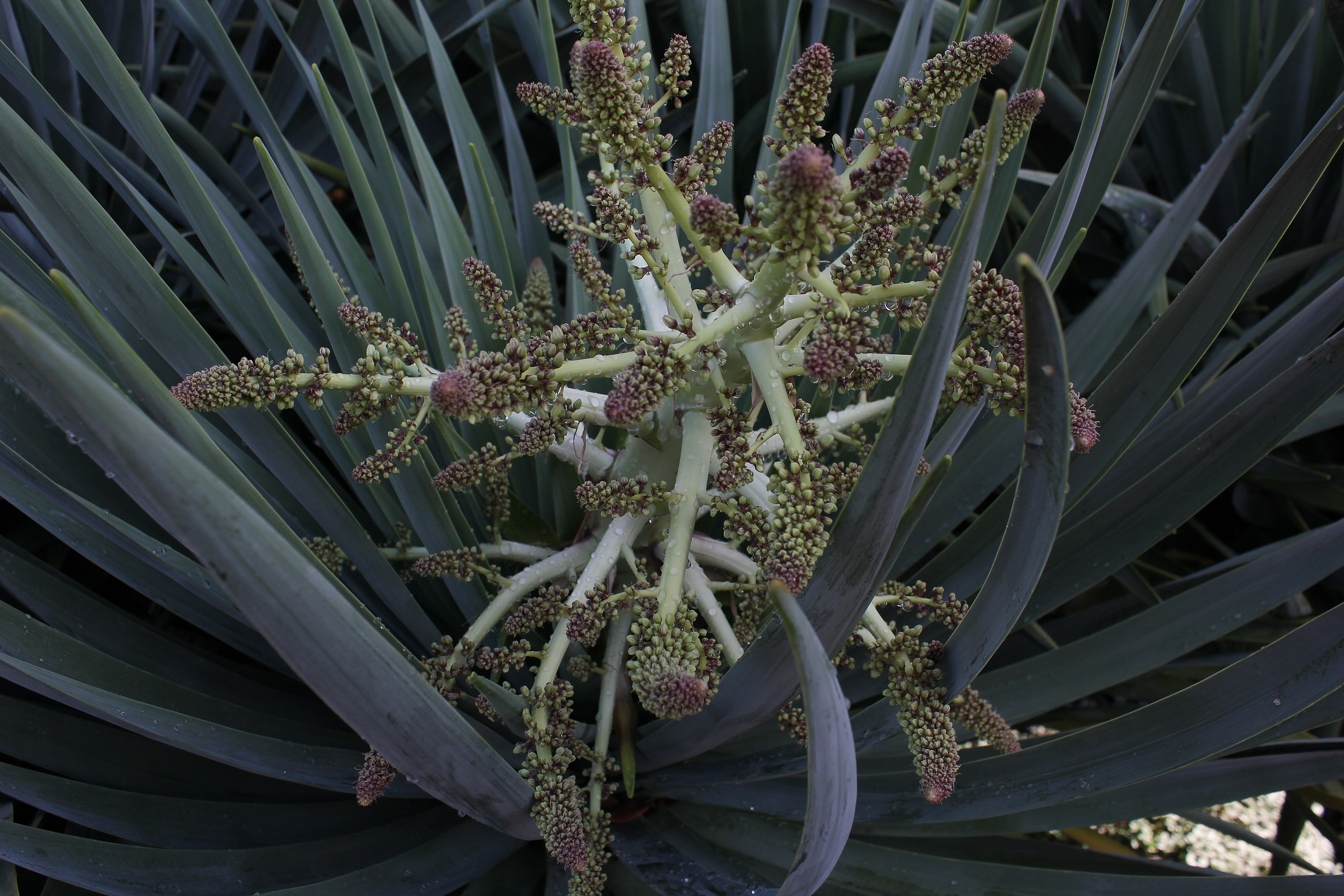 Inflorescência longa, com 60–120 cm de comprimento, glabra, bipinada, de flores numerosas em panícula terminal larga.